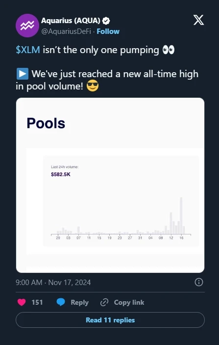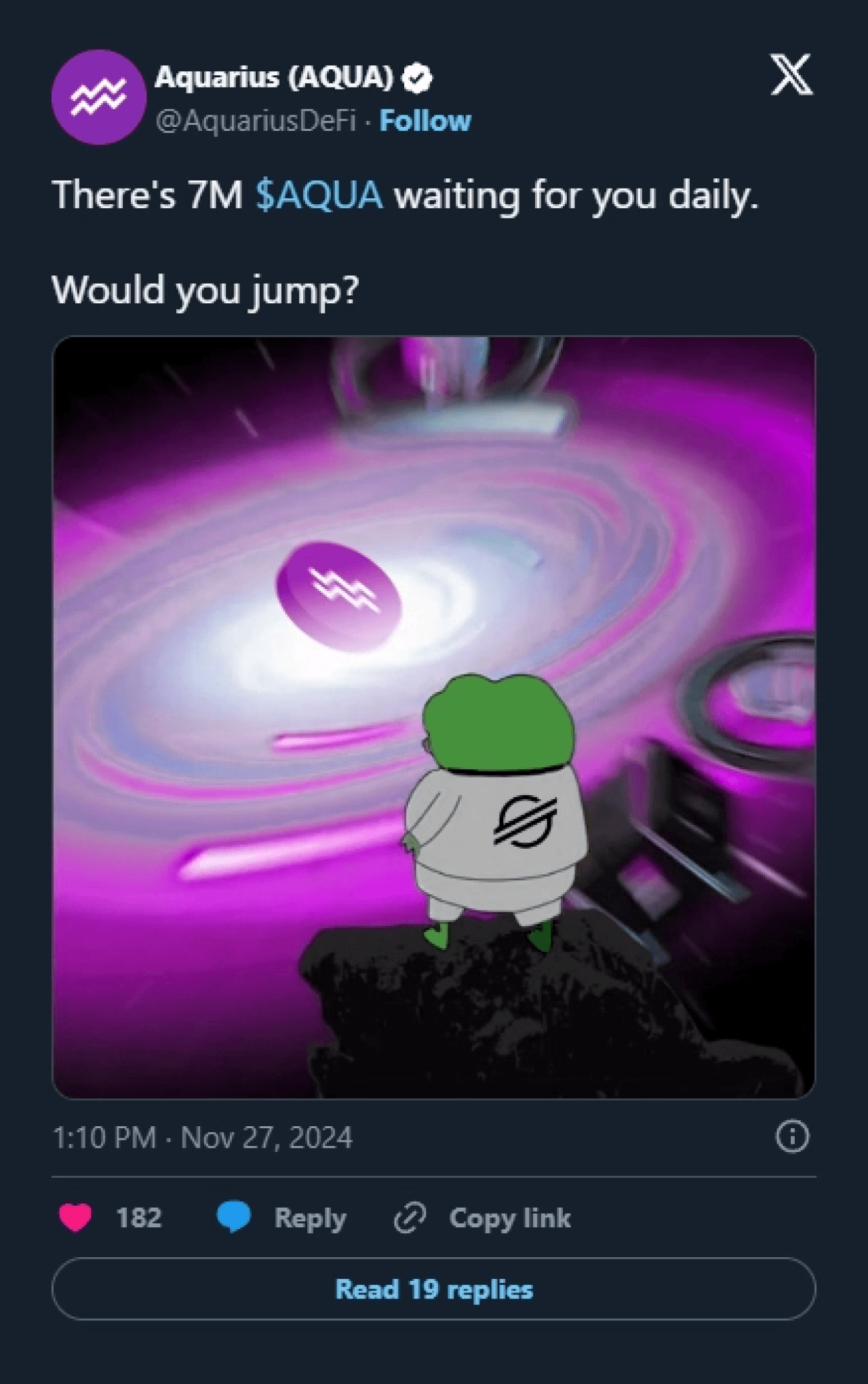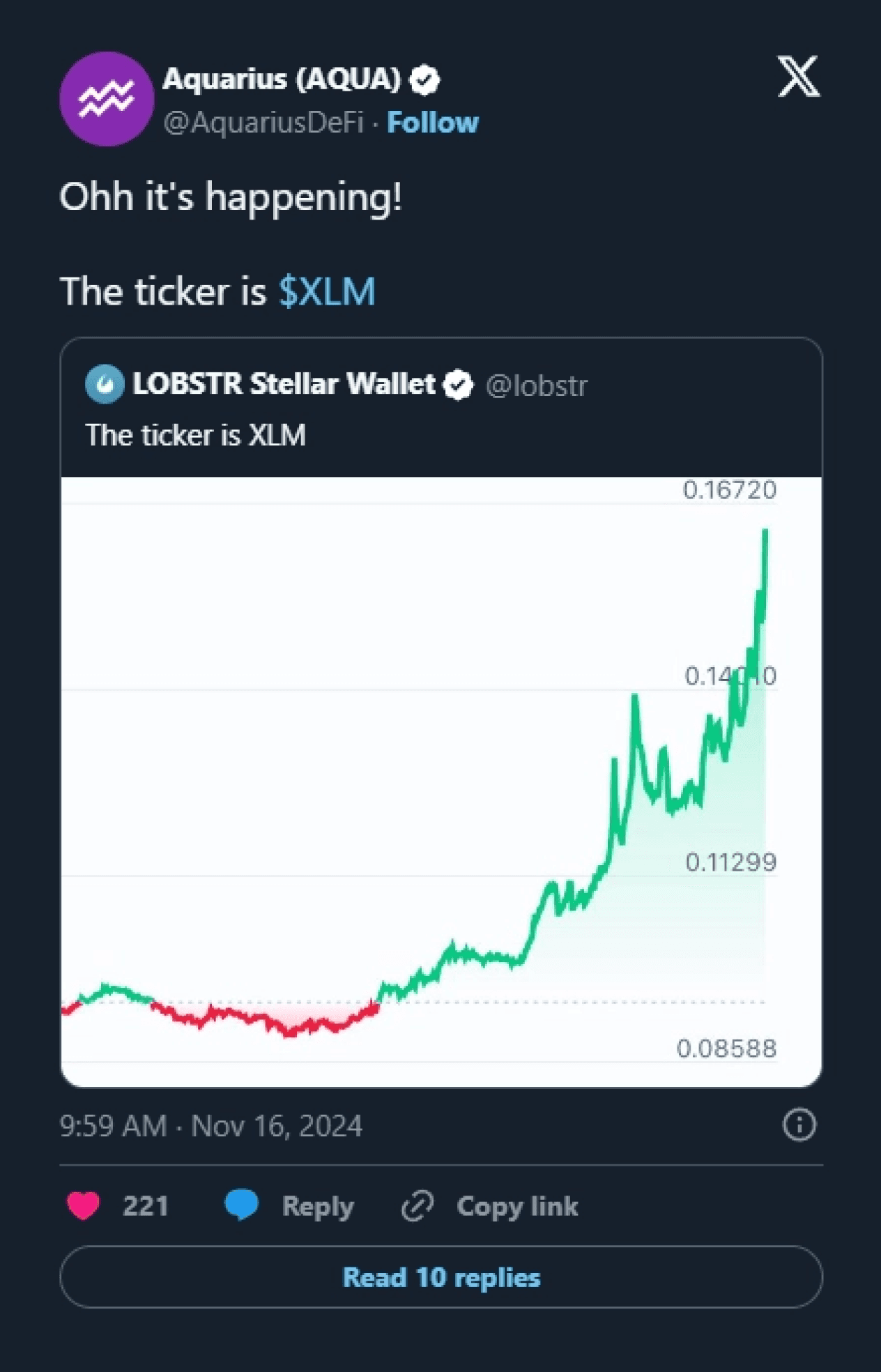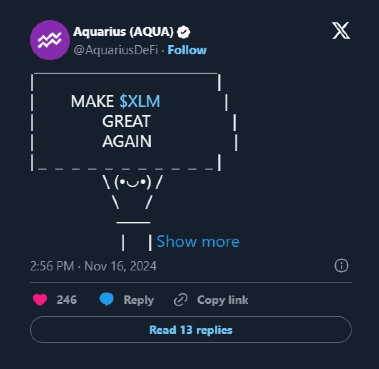 We started in a Friday, November 9th. But the team was eager to start posting as soon as possible. A day after, on Saturday, the Stellar ecosystem was pretty active and hyped due to the token's price. We took this chance and trend-hijacked it…