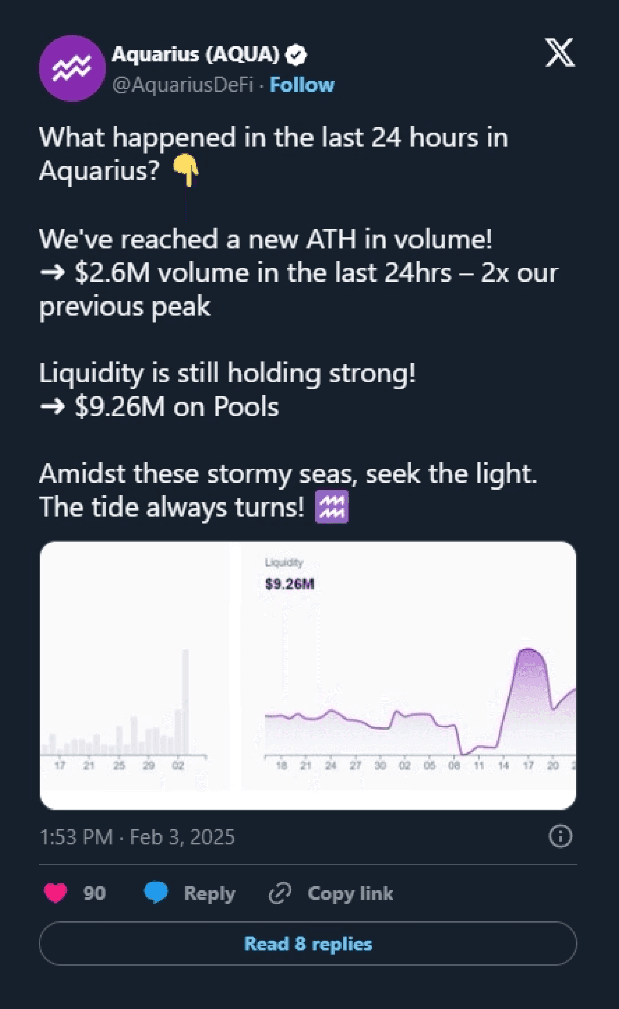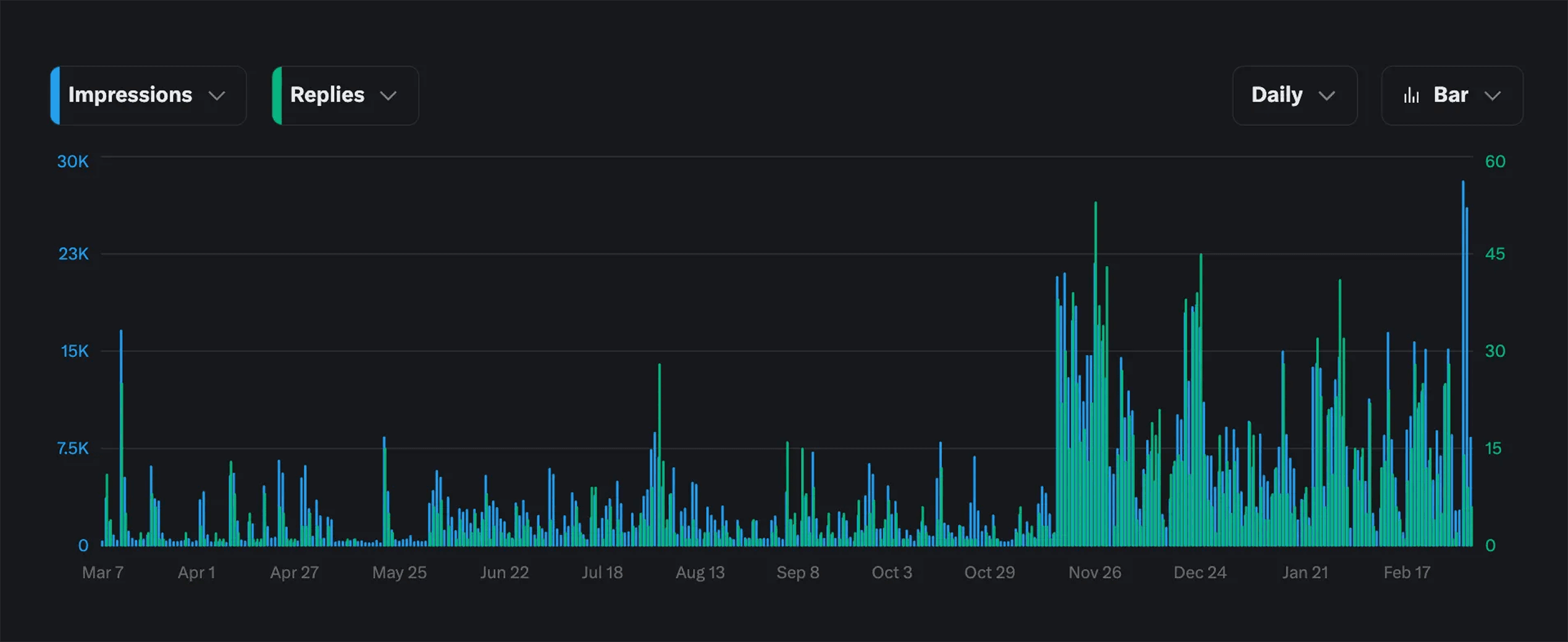 Impressions were highly correlated with the amount of replies we did for Aquarius. We interacted with major Web3 profiles constantly, also encouraging the community to strengthen our presence.