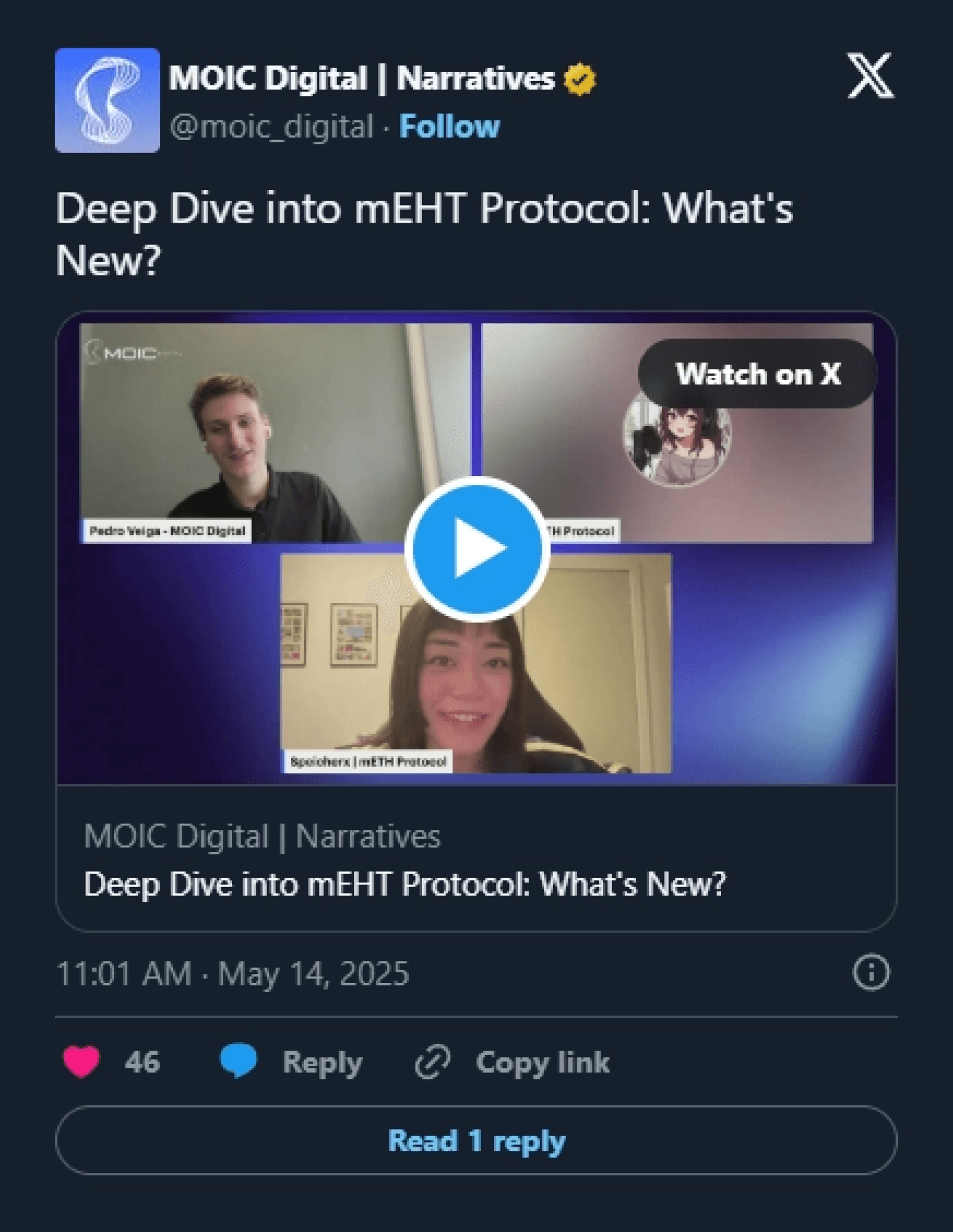 The MOIC team, led by the co-founder Pedro Veiga, had already been posting about mETH, sharing insights into the protocol's potential. That’s what caught the attention of the mETH team and led to us working together.