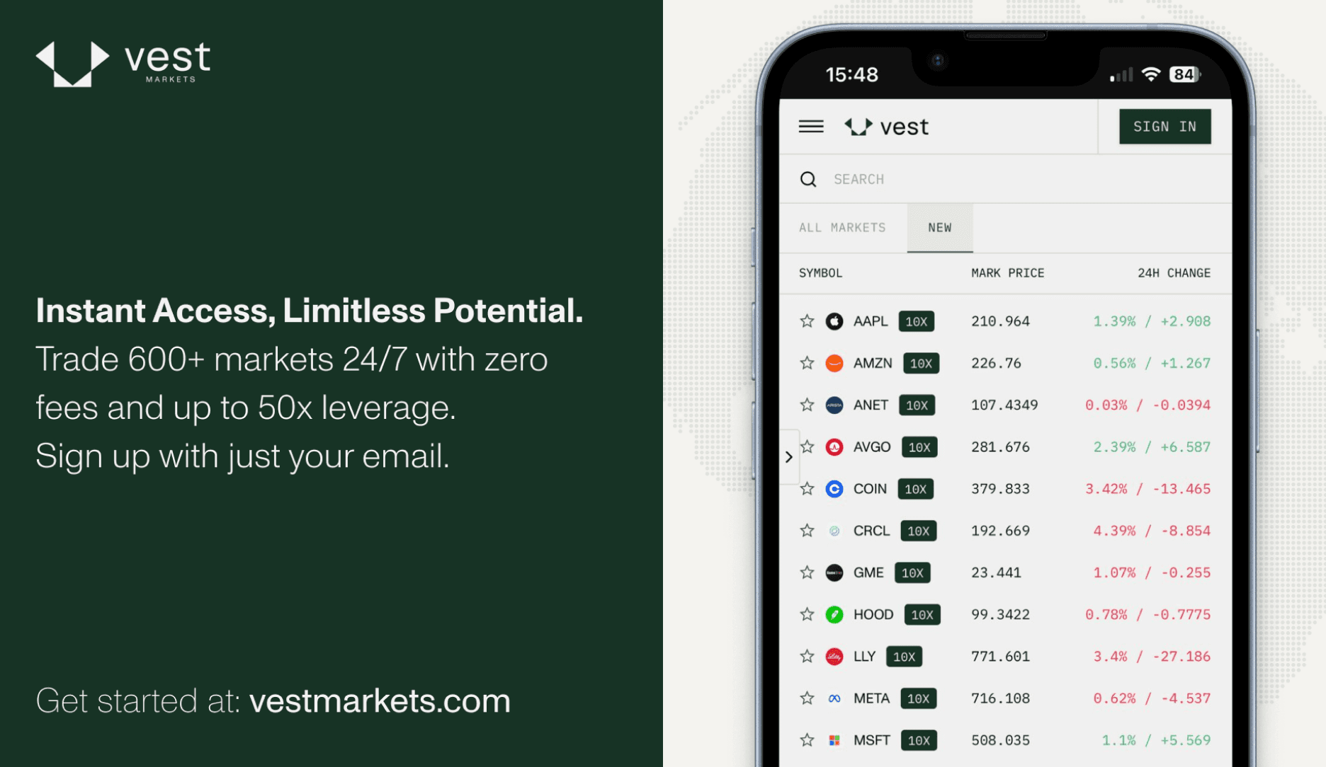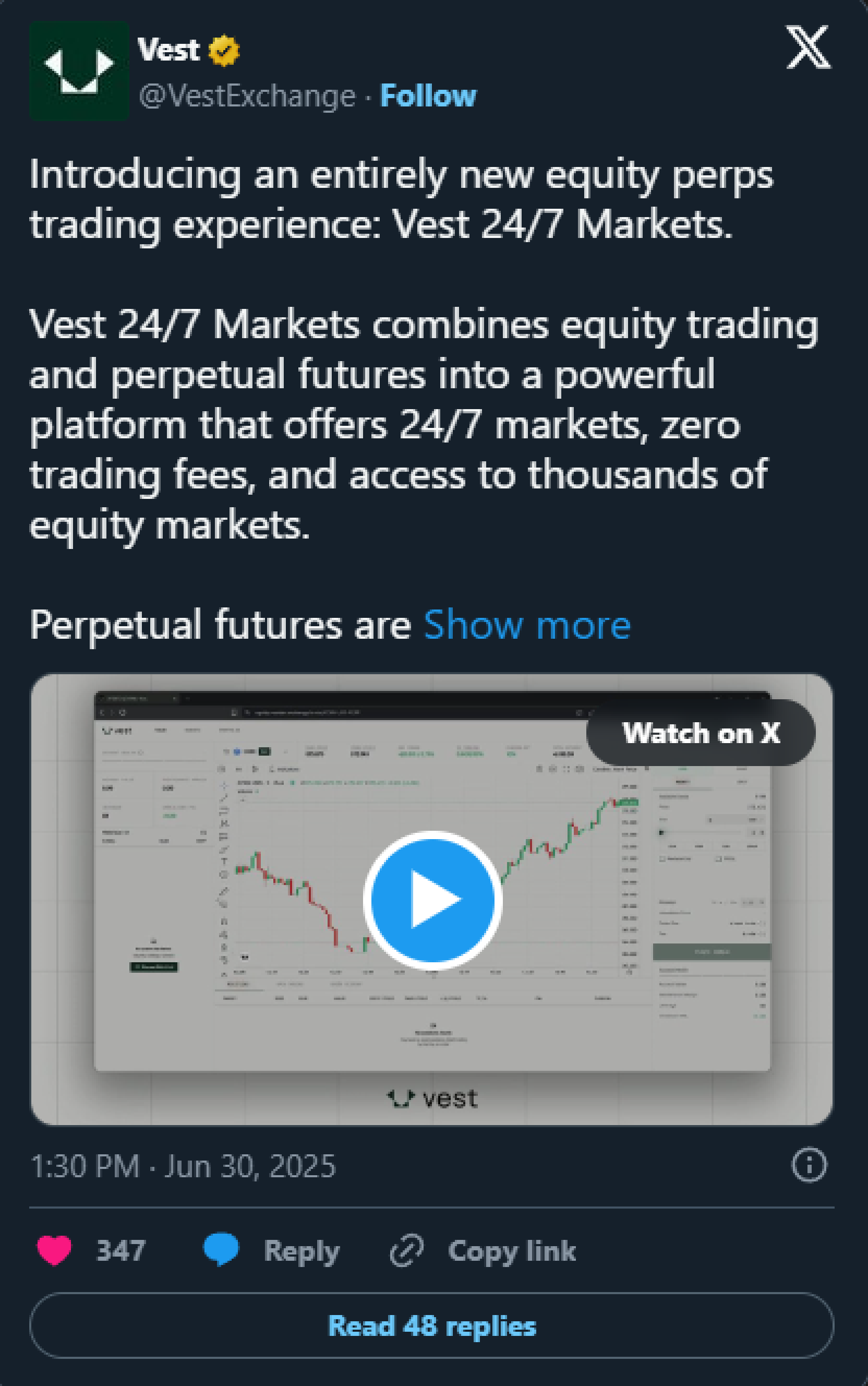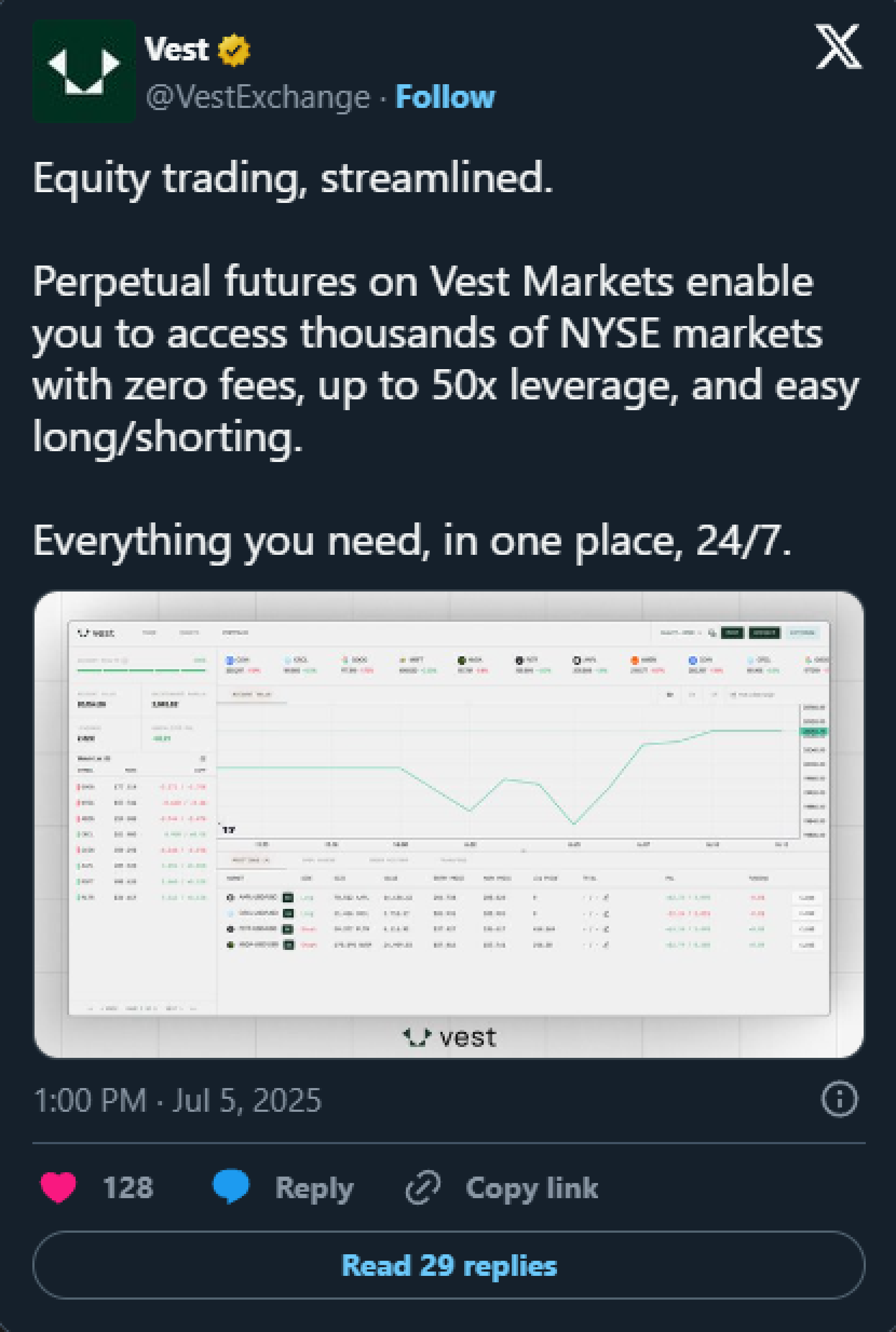 Vest Markets is a platform offering 24/7 zero-fee trading across equities, crypto, and FX, built to simplify the trading experience for end users.