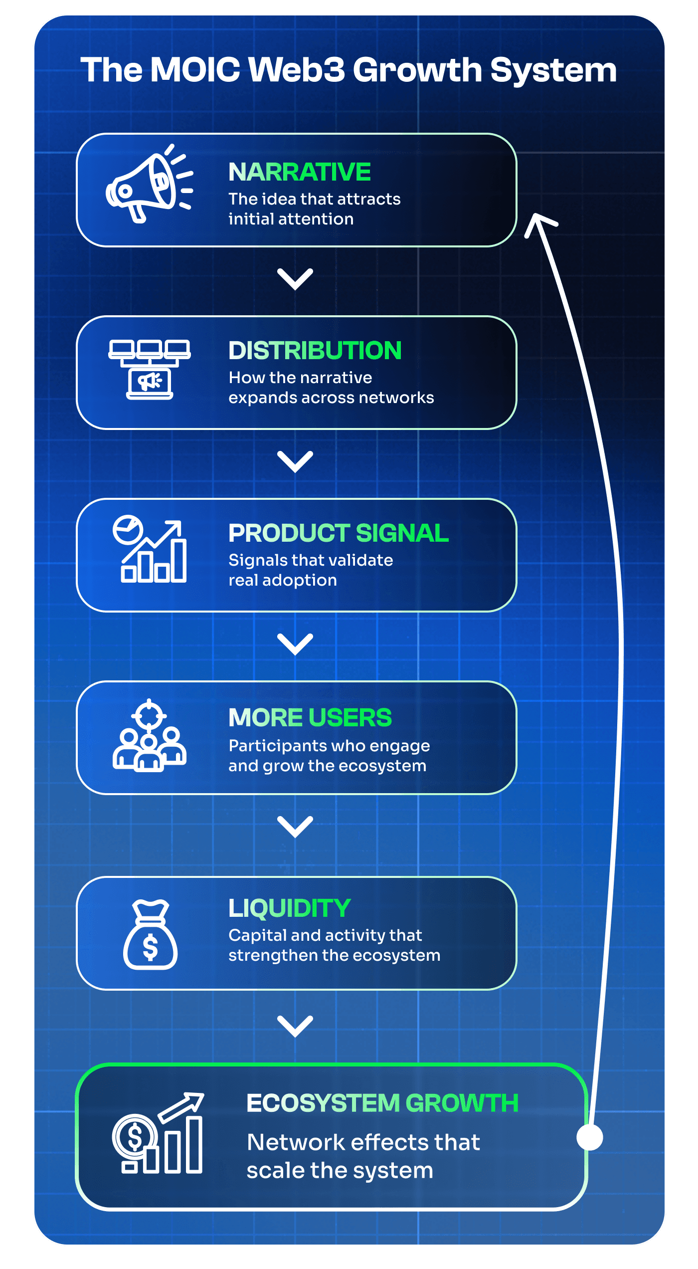 A central insight of the MOIC Canon is that Web3 growth emerges from systems rather than campaigns.