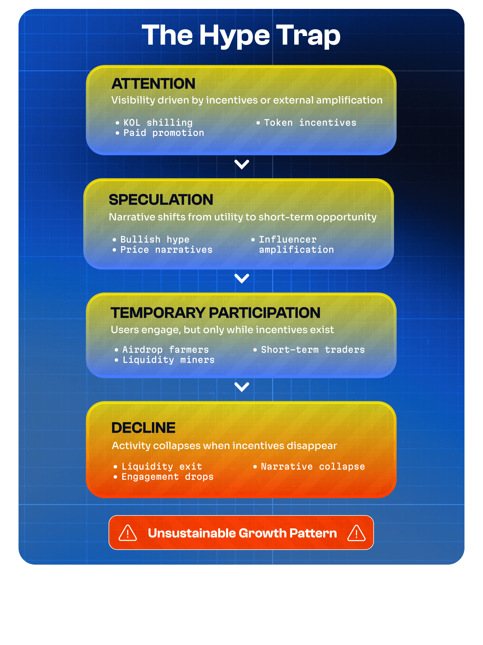 One of the most common failure patterns in Web3 marketing is confusing attention with adoption.